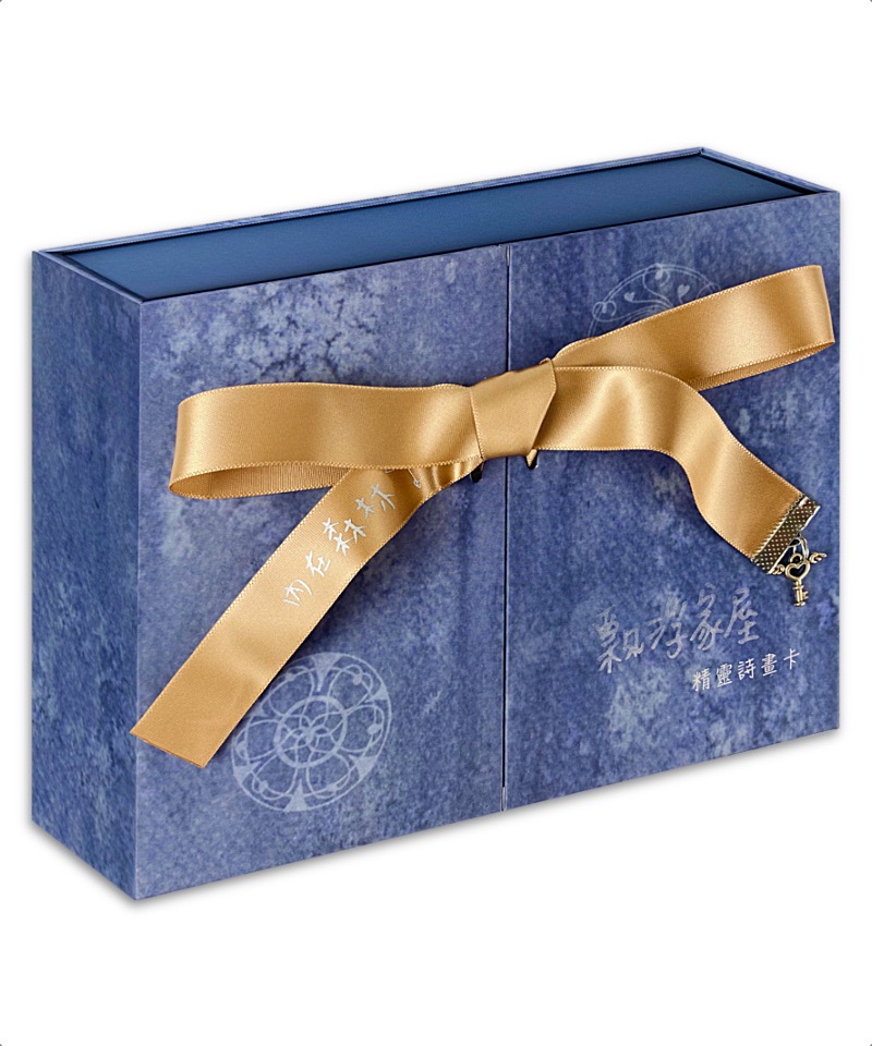 獨特的禮物式雙掀外盒,盒蓋宛如遊樂園大門,盒身彷彿門戶相通的屋宇,完美將作品概念具象化。若隱若現的半透明感燙銀封面,傳遞宇宙的深邃與嘹亮,搭配細緻的柔金色緞帶,每天珍惜地拆封自己的心,認知到自己是宇宙送給世界最美好的禮物。