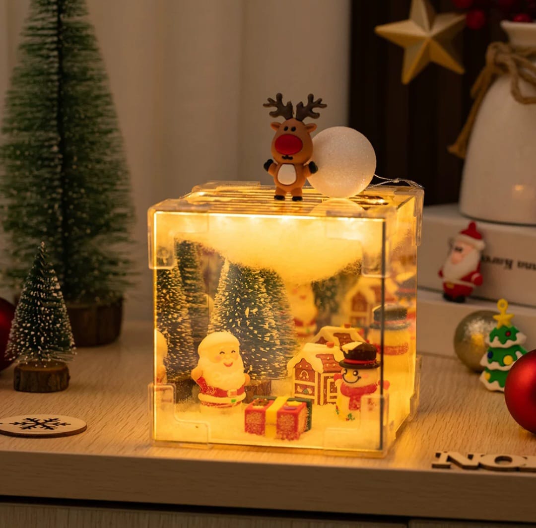 介紹:工作坊製作聖誕雪地鏡子魔方小燈盒,親手打造獨一無二的小宇宙,走進童話世界。魔術方塊造型設計獨特,既實用又具有裝飾性,增添空間的趣味性。小燈盒柔和的燈光,適合作為小夜燈,營造舒適的氛圍,適合臥室或客廳使用。