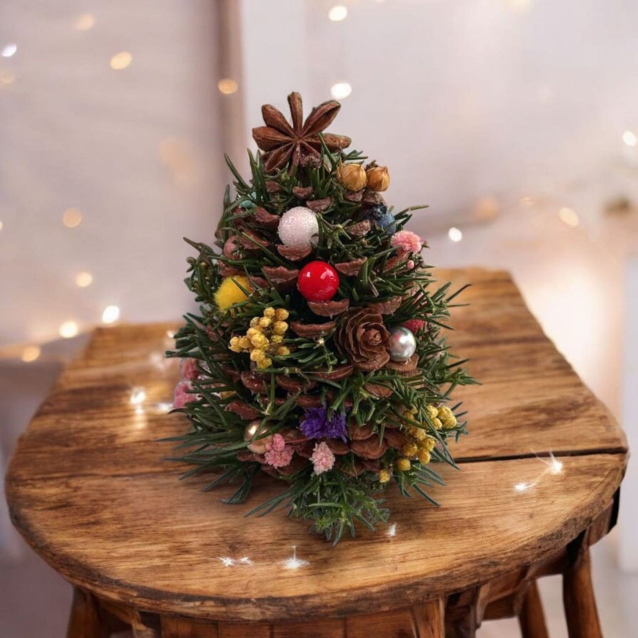 介紹: 成品約8-9cm。在松果上添加裝飾,變成聖誕樹。過程簡單療癒,製作屬於自己的聖誕樹。