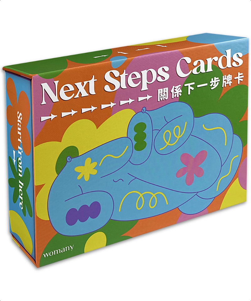 :關係下一步牌卡是同步牌卡的再進擊,設計給在關係中想要展開下一步關係的伴侶,在牌卡的提問上會有更多深入於關係生涯的面向,像是「你希望我們三年後會過著什麼樣的生活?」而關係同步牌卡的適用關係是接近於初認識的破冰階段,或是想與對方創造更多對話的情境下使用。