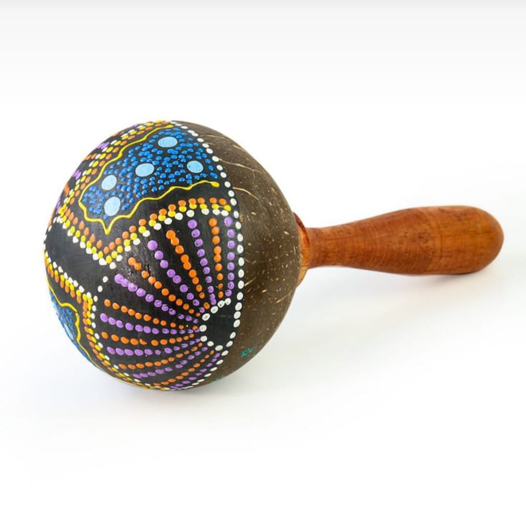 採用天然椰殼製成的沙錘, 在椰殼表面加上色彩繽紛的點點彩繪圖案,使其更有獨特性及民族色彩。